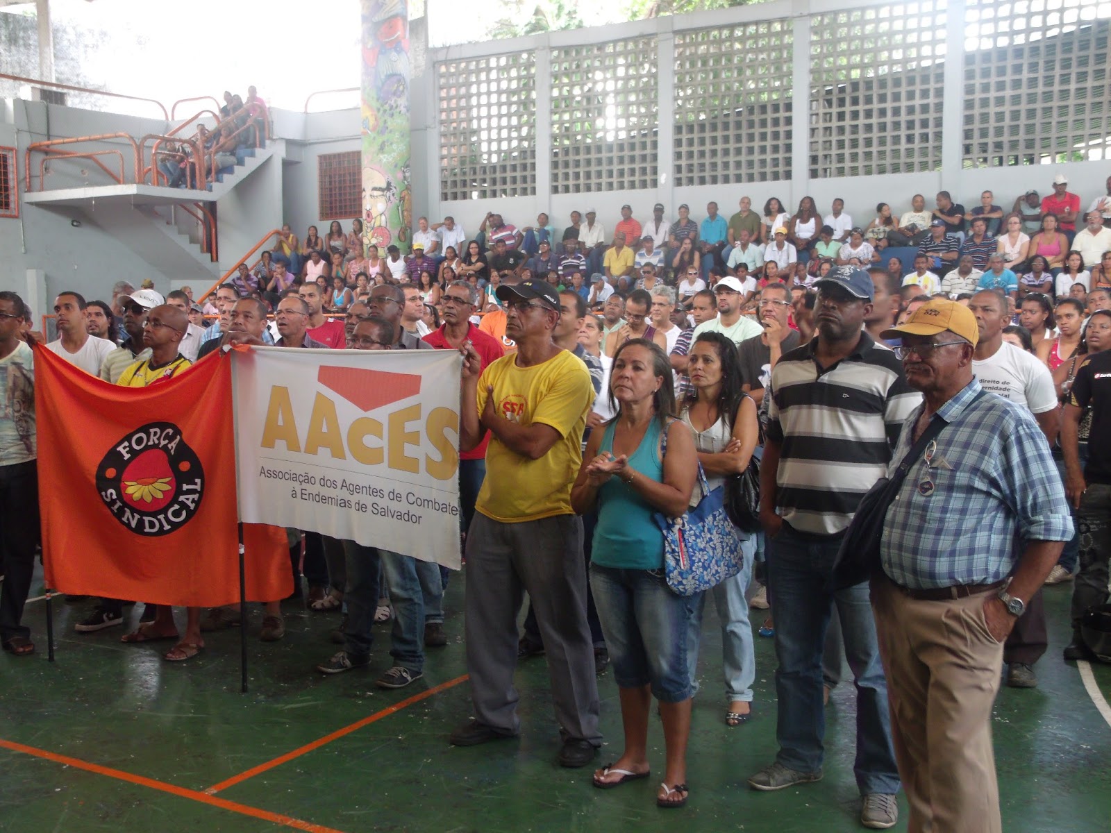 Hoje em assembleia no ginásio de esportes dos bancários os agentes de saúde decidiram manter a greve, depois da votação os servidores seguiram em passeata até a prefeitura, houve um inicio de confusão com a PM por causa do carro de som, mas depois tudo ficou resolvido quando foi retirado o aparelho do carro e seguimos ao som do servidor móvel quando chegamos na prefeitura o assessor de comunicação do prefeito senhor Roberto pediu para subir uma comissão composta pelo SINDSEPS, AACES e SINDACS, em conversa com o representante da gestão, ele garantiu que alguns secretários e até mesmo o prefeito vai nos atender, por isso foi marcada uma outra assembleia para sexta-feira 28 ás 9 horas em frente a prefeitura, venha e convide seu colega, porque a luta está sendo de alguns, mas a vitoria será de todos.